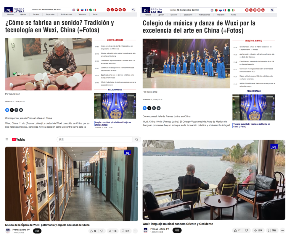 拉美社说,无锡不仅在乐器制造上表现出色,还在文化推广和教育方面发挥着重要作用。拉美社记者在锡剧博物馆采访锡剧演员,讲述她从12岁开始学习锡剧的经历,以及她在剧团中的学习和成长过程,通过展示戏服、乐器和剧本,向观众展示锡剧丰富的历史。通过江南影视艺术学院音乐厅的声乐课、混声合唱排演、民乐经典曲目演奏,直观地呈现音乐的力量和中国传统民族音乐的深厚底蕴。
